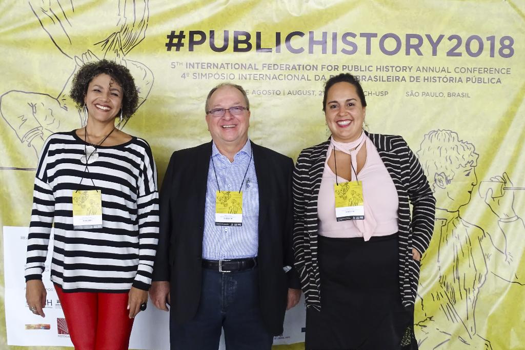 Durante o encontro, que fez parte da 5ª Conferência Anual da Federação Internacional da História Pública, o coordenador do CDM/MPRJ, procurador de Justiça Márcio Klang, e as historiadoras Nataraj Trinta e Maristela Santana apresentaram o CDM/MPRJ e o projeto Personalidades do MPRJ na mesa temática “Arquivos, Centros de Memória e Museus como lugares de História Pública”.