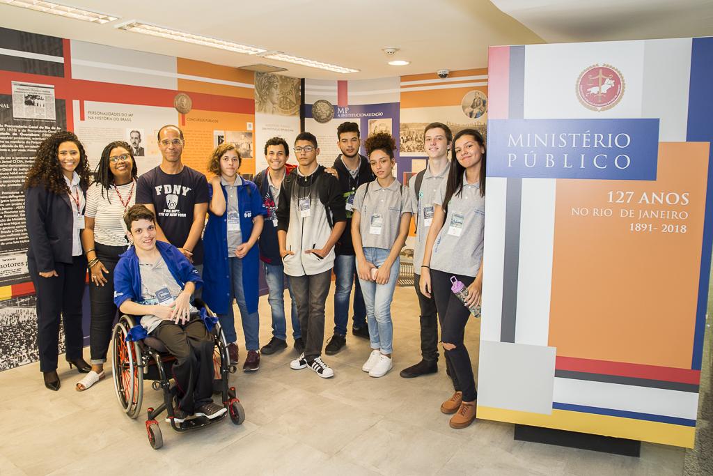 O Ministério Público do Estado do Rio de Janeiro (MPRJ), por meio do Centro de Memória Procurador de Justiça João Marcello de Araújo Júnior, recebeu, nesta quinta-feira (01/08), oito alunos da 1ª série do Ensino Médio do Colégio Estadual Hebe Camargo, em Pedra de Guaratiba, para uma visita guiada pelas exposições “Ministério Público: 127 anos no Rio de Janeiro” e “Cidadania em Construção”. A atividade foi organizada pelo Centro de Memória do MPRJ em parceria com o Museu Histórico Nacional (MHN).
