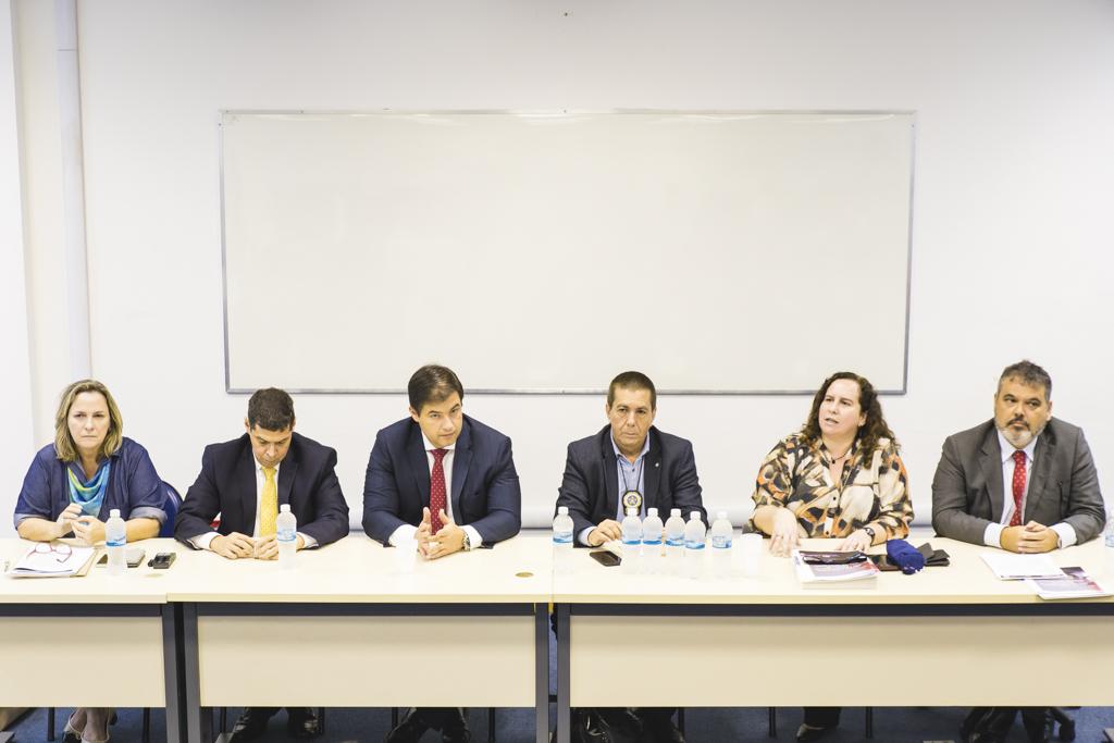 O Ministério Público do Estado do Rio de Janeiro (MPRJ) realizou, na manhã desta segunda-feira (04/03), na Cidade da Polícia, reunião para apresentar as mudanças em decorrência da reformulação das Centrais de Inquérito e das Promotorias de Investigação Penal (PIP) do MPRJ para os delegados de polícia de delegacias especializadas do Rio. Estiveram presentes os promotores de Justiça Alexandre Themístocles, Somaine Cerruti, Alexander Araujo, Alexandre Murilo Graça – responsáveis pelas quatro recém-criadas Promotorias de Justiça de Investigação Penal Especializadas -, e as promotoras de Justiça Elisa Fraga e Erika Puppim, respectivamente titular e designada para a 2ª Promotoria de Justiça de Investigação Penal Territorial da área Bangu e Campo Grande.