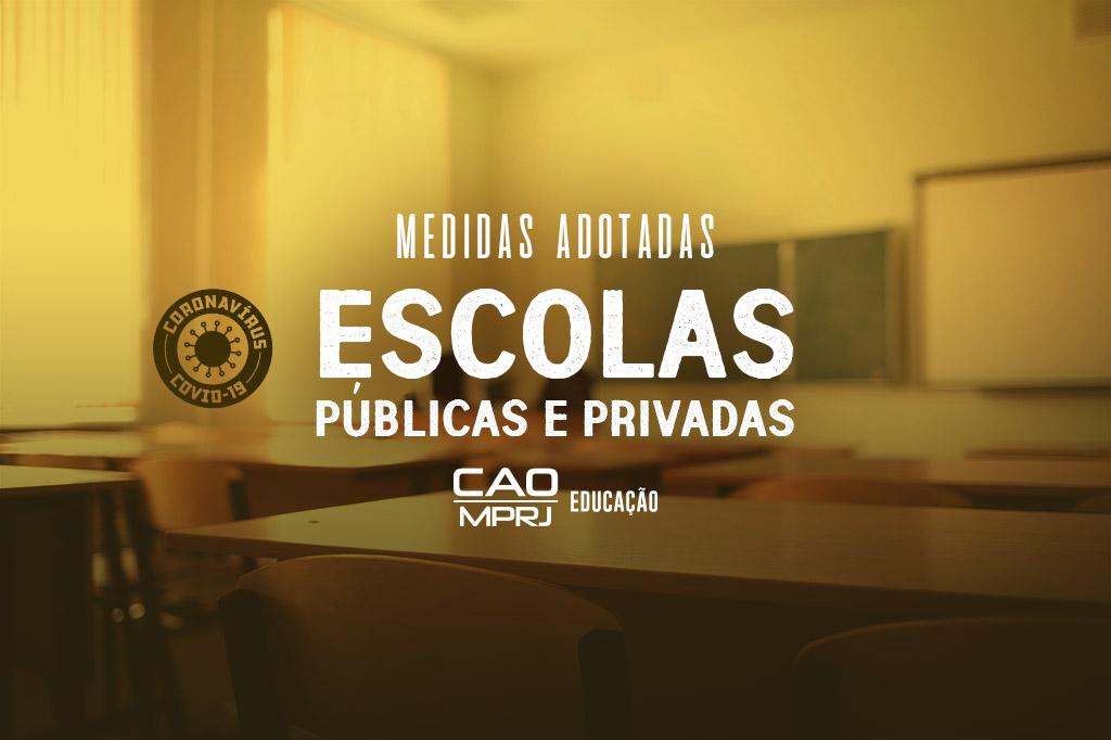 Dessa forma, desde o dia 19 de março foram instaurados Procedimentos Administrativos e Inquéritos Civis, expedidos ofícios e Recomendações a fim de acompanhar as medidas adotadas por instituições privadas e redes públicas de ensino, tais como a rede estadual e de municípios como Duque de Caxias, Belford Roxo, Magé, São João de Meriti, Campos dos Goytacazes, Nova Friburgo, Miracema, Rio das Ostras, Araruama, Cambuci, Santo Antônio de Pádua, Barra Mansa e Volta Redonda, entre outros. Foram várias as medidas recomendadas, desde a observância obrigatória da suspensão das aulas presenciais até a adoção de medidas compensatórias para garantia efetiva do direito à educação com qualidade.