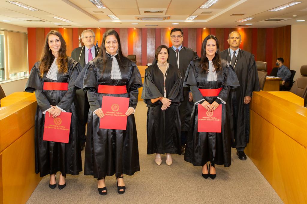 A cerimônia foi presidida pelo procurador-geral de Justiça, Eduardo Gussem, acompanhado presencialmente pelos procuradores de Justiça Anna Maria Di Masi e Marcelo Daltro Leite. O chefe de gabinete do PGJ, promotor de Justiça Virgílio Panagiotis Stravidis, leu o Termo de Posse. E de casa, por meio de videoconferência, a procuradora de Justiça Vera Regina de Almeida saudou as três empossadas em nome dos demais membros do Conselho Superior, ressaltando a importância de as novas promotoras de Justiça substitutas se comprometerem com a unidade institucional e com os objetivos estratégicos do Ministério Público fluminense.