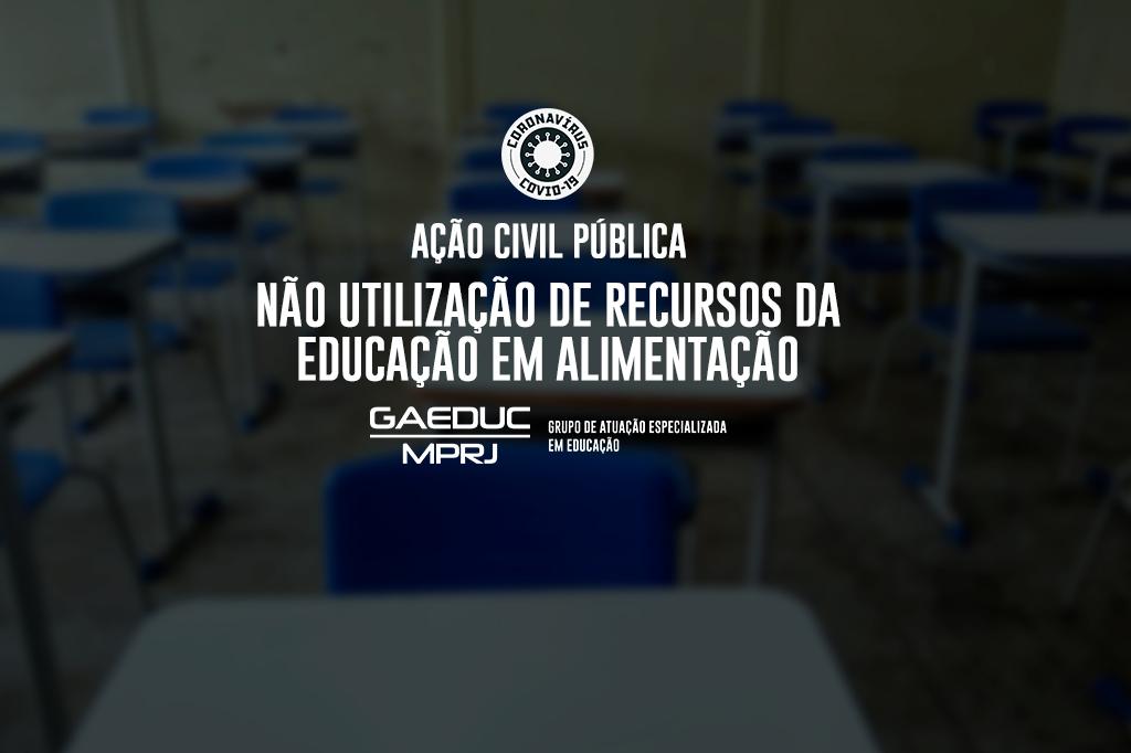 Também requer o GAEDUC/MPRJ a proibição de se gastar os recursos vinculados com a distribuição de cartões-alimentação aos alunos da rede municipal de ensino e seus responsáveis como modalidade de oferta alimentar. De acordo com a ACP, a Prefeitura deve garantir o legal e adequado financiamento da política pública de alimentação no município durante o período de suspensão das aulas, utilizando-se para tanto de fontes de recursos próprios não vinculados à educação, à exceção dos recursos do art. 5º da Lei 11.947/2009, nas hipóteses legais em que autorizado seu uso para aquisição, exclusivamente, de gêneros alimentícios.