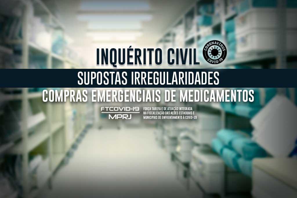 O Ministério Público do Estado do Rio de Janeiro, por meio da Força Tarefa de Atuação Integrada na Fiscalização das Ações Estaduais e Municipais de Enfrentamento à Covid-19 (FTCOVID-19/MPRJ) e da 3ª Promotoria de Justiça de Tutela Coletiva da Cidadania da Capital, instaurou inquéritos civis para apurar supostas irregularidades nas compras emergenciais, realizadas pela Secretaria de Estado de Saúde, de medicamentos específicos e de equipamentos de proteção individual (EPIs) para o uso em pacientes diagnosticados com a Covid-19.