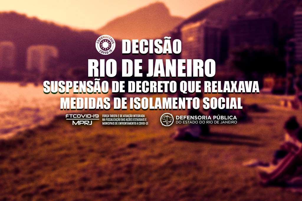 O Ministério Público do Estado do Rio de Janeiro (MPRJ), por meio da Força Tarefa de Atuação Integrada na Fiscalização das Ações Estaduais e Municipais de Enfrentamento à Covid-19 (FTCOVID-19/MPRJ) e da 3ª Promotoria de Justiça de Tutela Coletiva de Defesa da Cidadania da Capital, e a Defensoria Pública do Estado do Rio de Janeiro (DPERJ), obtiveram decisão liminar na Justiça que suspende artigos do Decreto Estadual 47.112/2020 que relaxava as medidas de isolamento social no Estado do Rio. A determinação, publicada nesta segunda-feira (08/06), suspende a normativa que autorizava, por exemplo, o funcionamento de bares, shopping centers, feiras livres, bares e parques públicos, entre outras.