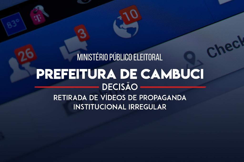 O Ministério Público Eleitoral, por meio da Promotoria Eleitoral Junto à 97ª Zona Eleitoral – Cambuci, obteve decisão favorável em representação por conduta vedada ao agente público, ajuizada contra o prefeito de Cambuci, Agnaldo Vieira de Mello. A Justiça Eleitoral determinou a retirada de propaganda institucional veiculada em ambiente oficial do governo municipal, prática proibida por lei nos três meses que antecedem a eleição municipal. O gestor aparece em dois vídeos publicados na página oficial da rede social “Facebook” da prefeitura, falando de obras realizadas na cidade durante a sua gestão.