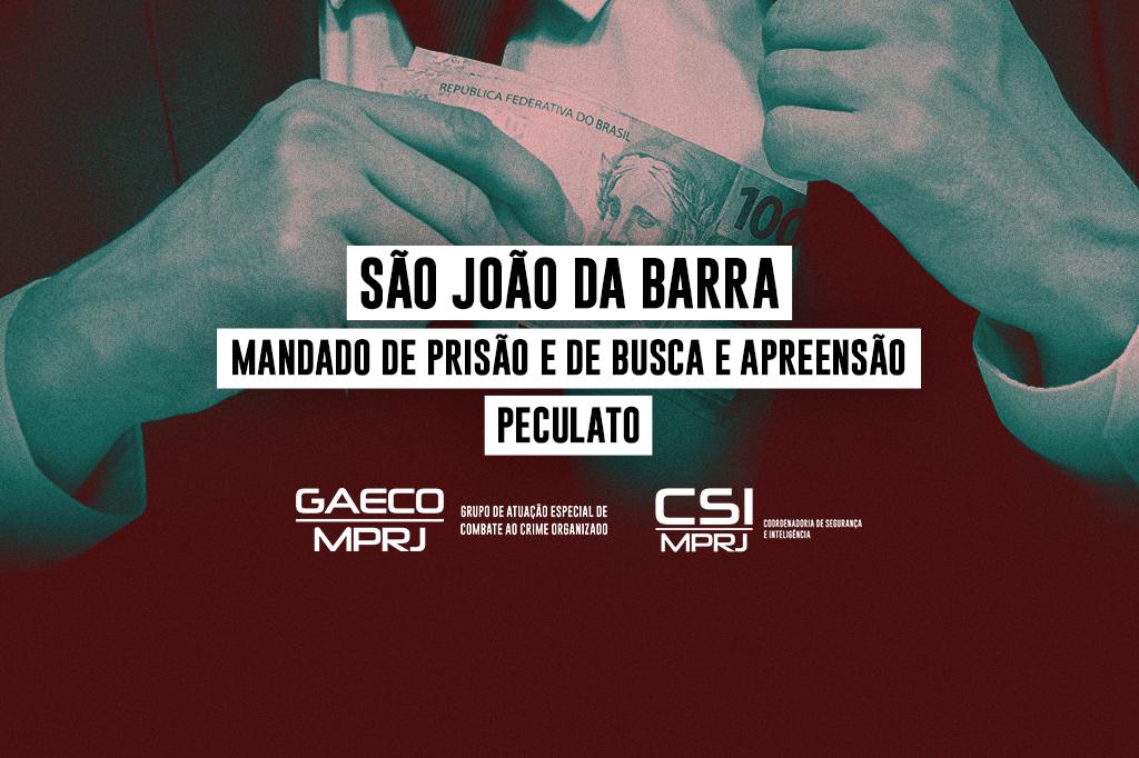 O Ministério Público do Estado do Rio de Janeiro, por meio do Grupo de Atuação Especial de Combate ao Crime Organizado (GAECO/MPRJ), denunciou à Justiça Ronaldo Gomes de Souza, vereador da Câmara Municipal de São João da Barra e candidato à reeleição. Ele é acusado do crime de peculato, praticado 46 vezes. O GAECO/MPRJ requereu a prisão preventiva do vereador, além de busca e apreensão na Câmara e no endereço residencial. Os mandados foram expedidos pelo Juízo da Vara Criminal do município e cumpridos na tarde desta sexta-feira (30/10). A operação denominada Casa Assombrada conta com o apoio da Coordenadoria de Segurança e Inteligência (CSI/MPRJ). O vereador foi conduzido pelos agentes para a delegacia local (145a DP).