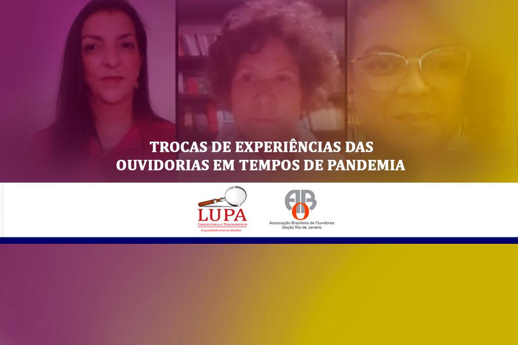 O Ministério Público do Estado do Rio de Janeiro, por meio da Ouvidoria/MPRJ, participou, no sábado (31/10), do projeto de lives da Lupa Consultoria e Treinamento em parceria com a Associação Brasileira de Ouvidores do Rio de Janeiro (ABO/RJ), com o tema “Trocas de Experiências das Ouvidorias em Tempos de Pandemia”. O encontro virtual foi transmitido pelo canal do Youtube da Lupa Consultoria.