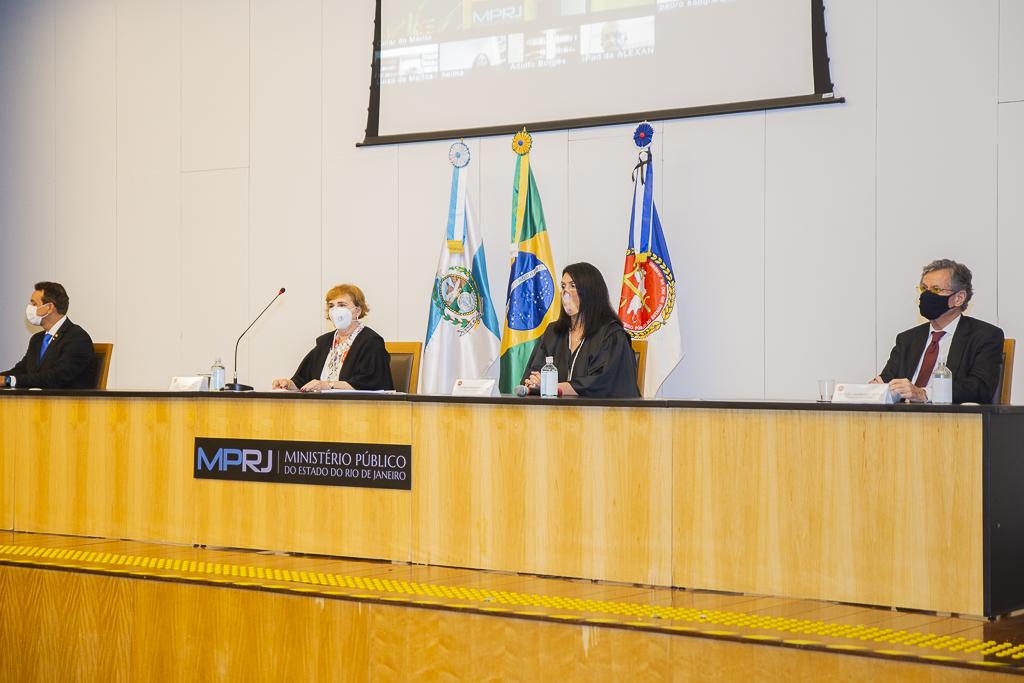 O Ministério Público do Estado do Rio de Janeiro (MPRJ) realizou, nesta sexta-feira (18/12), no auditório do edifício-sede, a 12ª sessão extraordinária do Órgão Especial do Colégio de Procuradores de Justiça, que homologou o resultado da eleição para a composição da lista tríplice para o cargo de Procurador-Geral de Justiça. Na ocasião, também foi realizada a sessão solene de entrega do Colar do Mérito do MPRJ e da Medalha Annibal Frederico de Souza, em homenagem ao Dia Nacional do Ministério Público, comemorado no último dia 14/12. Acatando recomendações médicas e sanitárias, os integrantes do Órgão Especial participaram da solenidade de maneira remota, enquanto o evento de entrega do Colar e da Medalha teve sua audiência restrita apenas aos agraciados, sendo transmitido ao vivo pelo portal do MPRJ na internet.