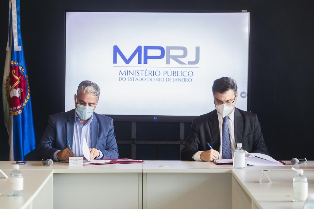 O presidente da ALERJ, André Ceciliano, complementou: "Essa parceria é boa para todos, tivemos um aumento significativo do valor em relação ao contrato anterior. Então só tenho que agradecer e também elogiar a sua administração por todos os avanços, pelo MPRJ em Mapas, que colocou o MP do Rio na vanguarda", disse André Ceciliano.